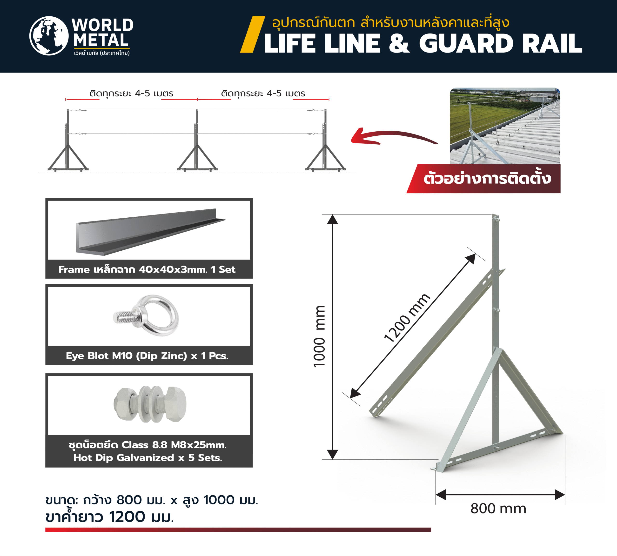 Lifeline ราวกันตกหลังคา – รุ่นสูง 1.0 เมตร
