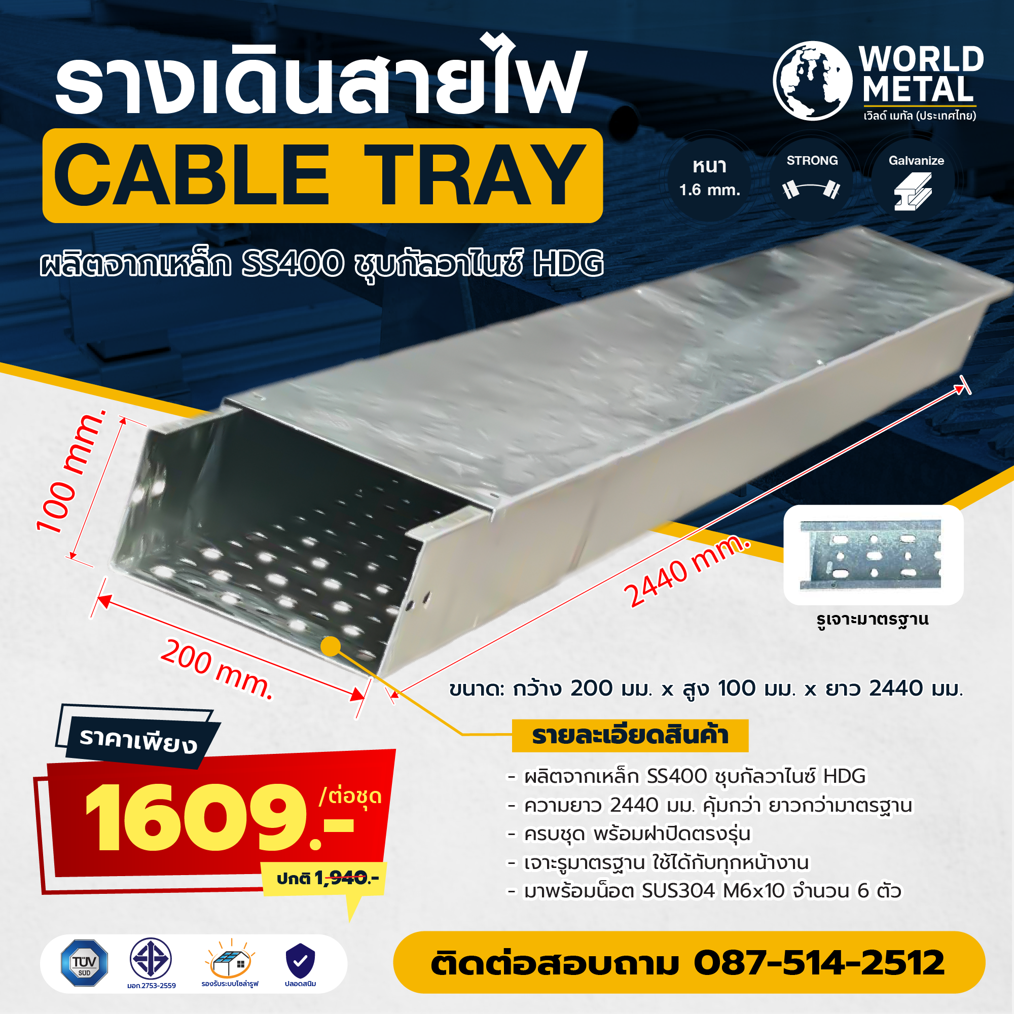 รางเดินสายไฟ HDG ขนาด 200x100x2440 มม. (Perforated Tray)